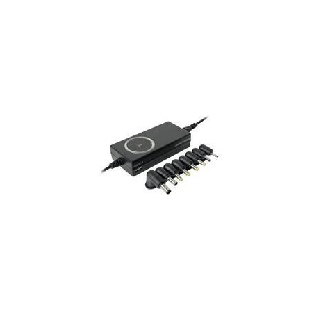 CARGADOR UNIVERSAL INTELIGENTE CON PUNTAS INTERCAMBIABLES Y PUERTO USB PERFECT CHOICE - NEGRO (Pesos)