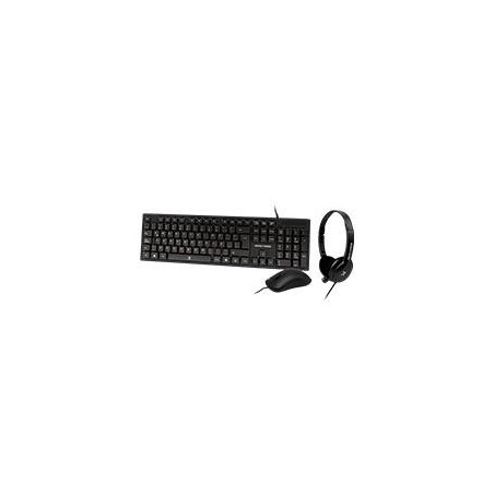 KIT TECLADO / MOUSE / DIADEMA CON MICROFONO INTEGRADO ALAMBRICOS CONECTOR USB / 3.5MM PERFECT CHOICE - NEGRO (Pesos)